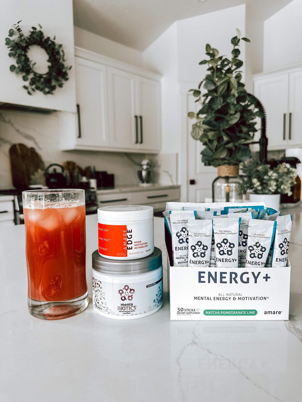 Happy Juice Is a delicious all-natural mental wellness drink that clinically works through the "on switch" In the Gut-Brain axis to address sadness, anxiousness, mental flow, mood, increase dopamine, serotonin, and more. This is where most people start, and personally - it's my hero product